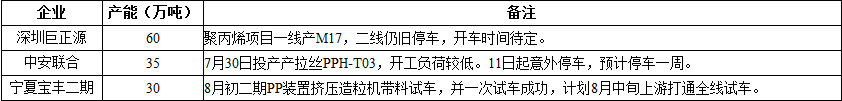 ????????8月份國(guó)內(nèi)聚丙烯裝置檢修匯總