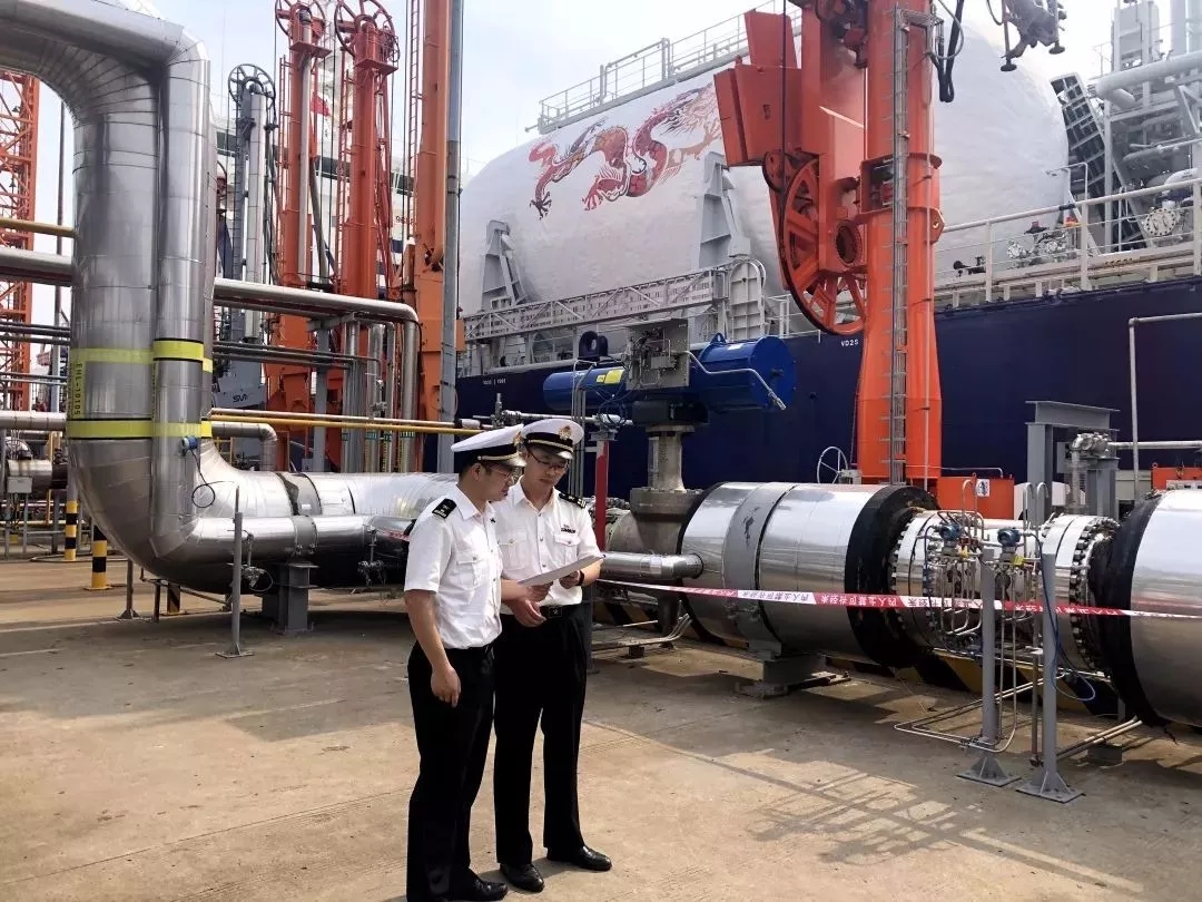 ????????運(yùn)輸船靠泊后,泰州海關(guān)關(guān)員第一時(shí)間辦理了單證審核、登輪檢疫等監(jiān)管通關(guān)手續(xù),實(shí)現(xiàn)了“靠畢即檢”和“檢畢即卸”,科學(xué)確定船艙容量計(jì)重方案,為烯烴項(xiàng)目落地保駕護(hù)航。