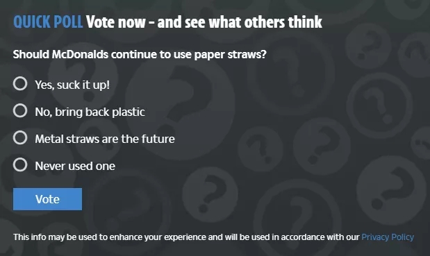 ????????去年5月,麥當勞做出了一個重要決定:全英1300多家麥當勞停止使用一次性塑料吸管,全面轉(zhuǎn)為使用紙質(zhì)吸管,他們希望這樣的做法能夠最大程度減少塑料對環(huán)境造成的傷害。