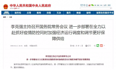 國務(wù)院總理李克強(qiáng)2月11日主持召開國務(wù)院常務(wù)會(huì)議,進(jìn)一步部署在全力以赴抓好疫情防控同時(shí),加強(qiáng)經(jīng)濟(jì)運(yùn)行調(diào)度和調(diào)節(jié),更好保障供給...