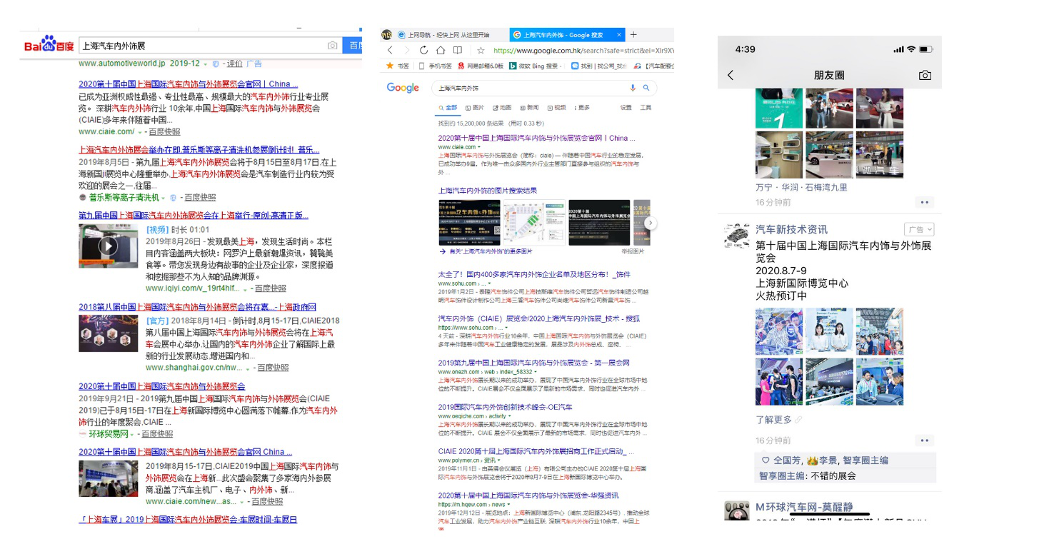 ????????相對往屆,CIAIE組委會今年高度重視傳播手段建設(shè)和創(chuàng)新,積極推進(jìn)改革創(chuàng)新,堅(jiān)持融媒體呈現(xiàn),內(nèi)宣外宣社宣網(wǎng)宣聯(lián)動,全媒體同步發(fā)力,建立多樣化、多渠道、全方位的宣傳矩陣,陣容空前強(qiáng)大,線上聚焦行業(yè)知名媒體、微信朋友圈廣告、信息流廣告、百度推廣、新媒體平臺、微信公眾號、電子郵件、短信等,線下定位核心雜志期刊、江浙滬區(qū)核心路段路牌廣告、機(jī)場廣告、核心汽車產(chǎn)業(yè)商圈廣告、同類型展會地推、郵寄入場券等深入展會宣傳,另有創(chuàng)新性互動式的投票活動推廣、展會現(xiàn)場直播,全方位、立體式推廣,打造全方面、多層次的宣傳格局。