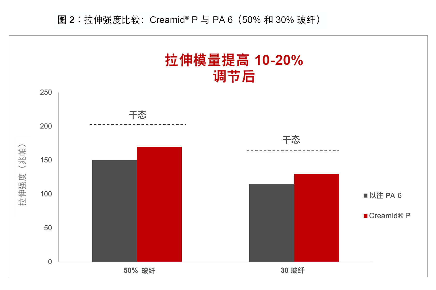 ????????新業(yè)務(wù)開發(fā)ETP總監(jiān)Markus Krippner 指出:“以往,PA 6化合物由于具有較高的吸水性而無法勝任某些結(jié)構(gòu)性應(yīng)用,而現(xiàn)在Creamid P 系列的化合物明顯改善了濕態(tài)的拉伸特性,因此能夠達(dá)到這些應(yīng)用的要求。同樣的,此技術(shù)也適用于優(yōu)化聚酰胺66化合物的性能。”
