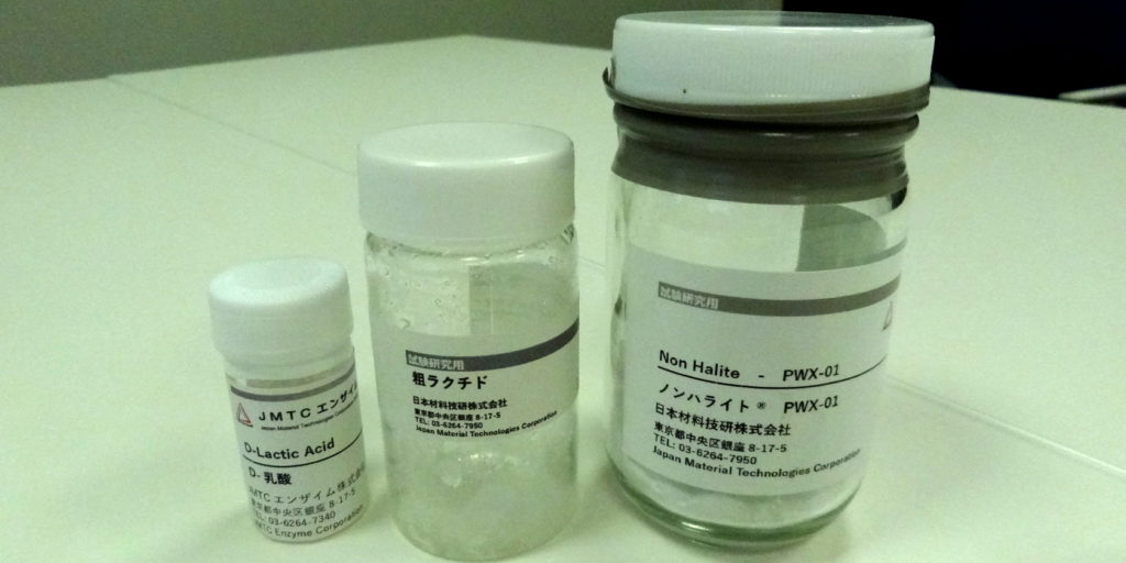 ????????然后,關(guān)于用于醫(yī)療應(yīng)用的生物可吸收材料和可生物降解樹脂,JMTC已經(jīng)建立了具有高光學(xué)純度的D-乳酸的工業(yè)生產(chǎn)技術(shù)。D-乳酸是聚(乳酸-共-羥基乙酸)(PLGA)和聚乳酸(PLA)等的原料?;贏GC公司開發(fā)的基因改造技術(shù)(TYO:5201),JMTC已經(jīng)建立了一種從植物中獲得這種D-乳酸的小批量生產(chǎn)方法。