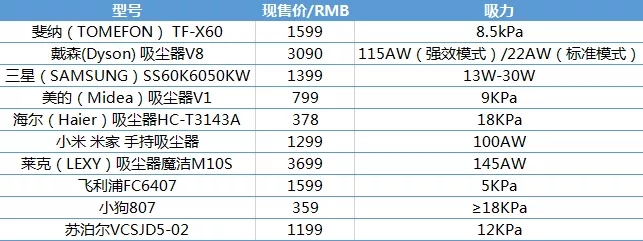 十大品牌不同型號(hào)吸塵器對(duì)應(yīng)售價(jià)及吸力