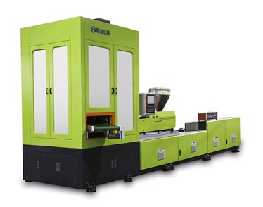 ????????該機(jī)型采用三工位結(jié)構(gòu),即第一工位注射瓶坯,第二工位拉伸吹瓶,第三工位脫瓶,其優(yōu)勢在于管坯注塑成型后,利用自身所保留的熱量,直接進(jìn)行拉伸吹塑,避免了管坯先要冷卻,損失熱量,然后再加溫,能量反復(fù)消耗的缺點(diǎn)。產(chǎn)品只一次成型,沒有中間轉(zhuǎn)運(yùn)環(huán)節(jié),徹底杜絕管坯相互碰撞的可能性,保證了極高的外觀質(zhì)量。
